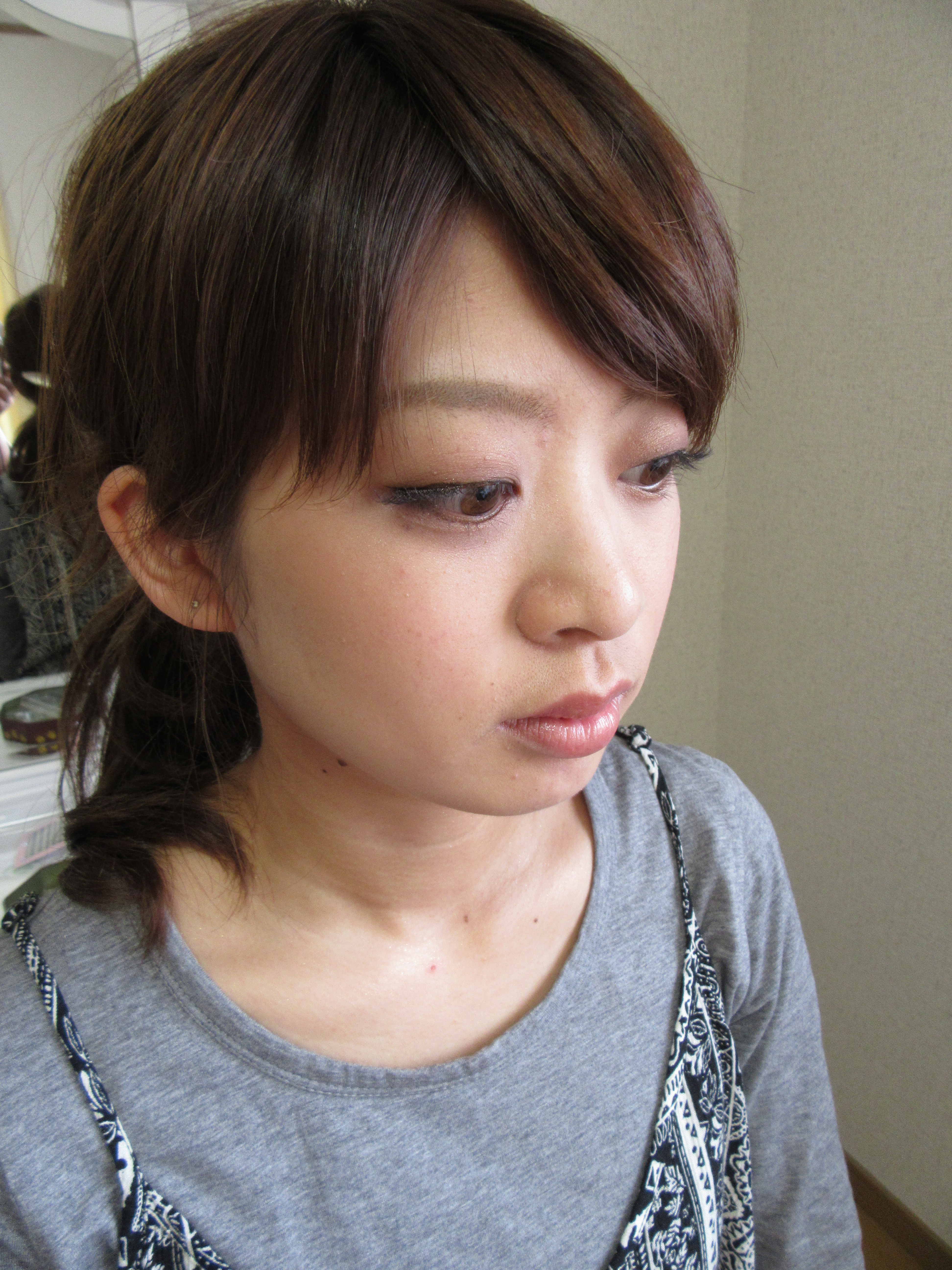早速、ご自身でもやってもらいましたが・・・。正直に言うとほとんど素顔と変わらない状態。